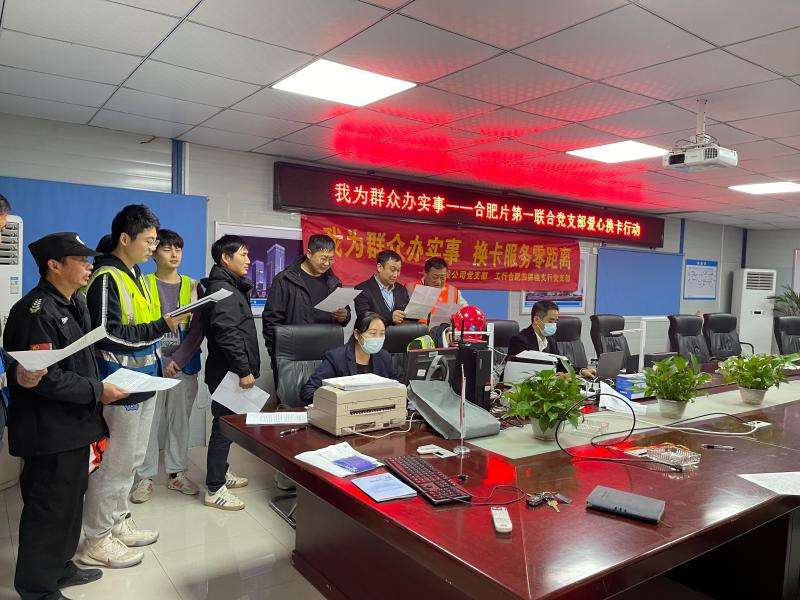 小卡片承载大民生,按照省人社厅统一部署,合肥市已于2021年4月28日起发行第三代社会保障卡。为方便公司员工换卡升级,bwin必赢电子唯一官网公司党支部统一组织,联合工行雷锋储蓄支部为广大员工和工地建设者提供免费上门换卡服务。通过线上采集、快速申请、即时制卡、现场激活,省去了广大员工和工地建设者办理相关业务的“跑腿”时间。