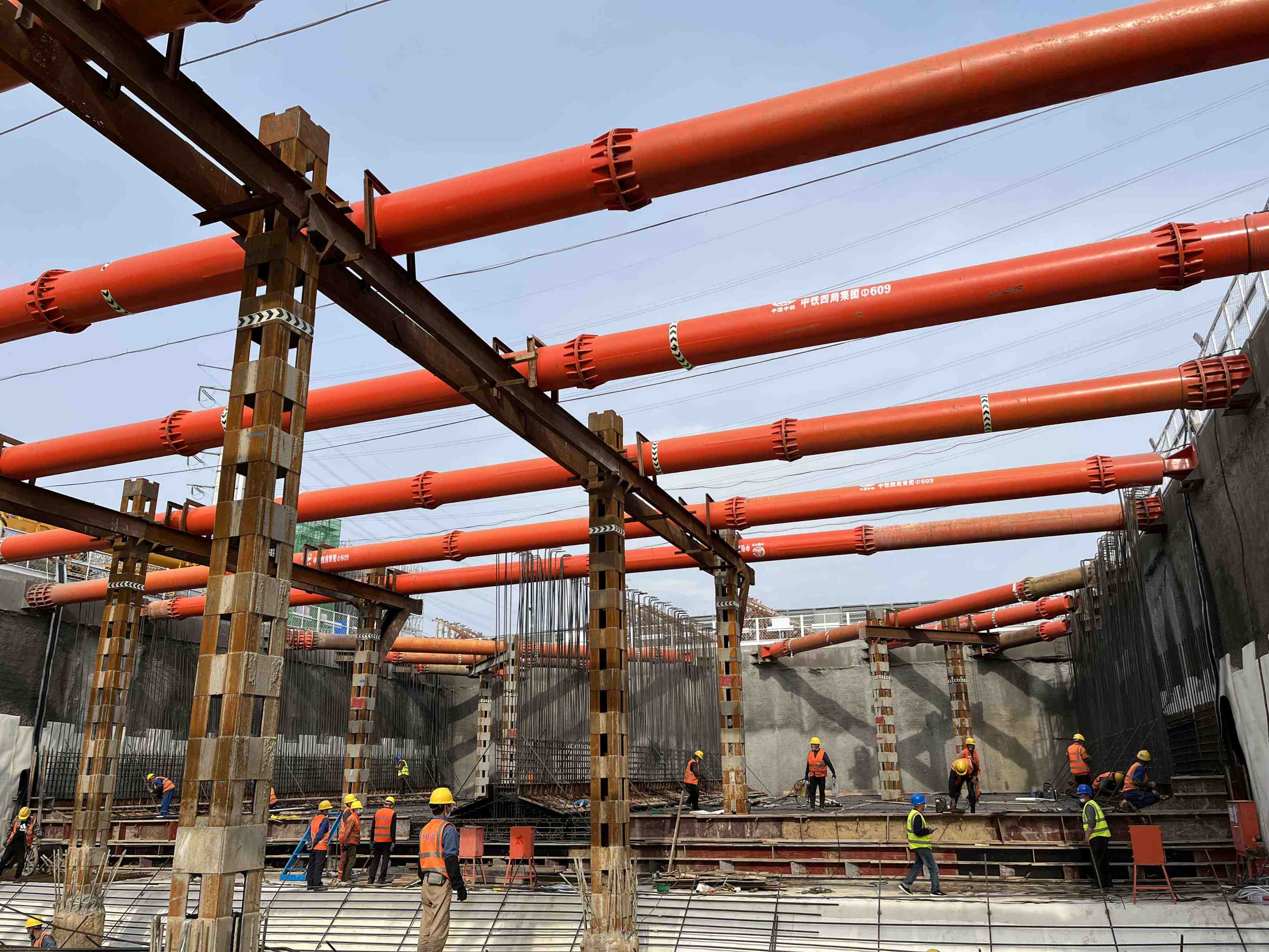 三月以来,bwin必赢电子唯一官网公司克服多日阴雨、施工场地狭小等众多不利条件制约,科学组织、统筹谋划施工工序。项目管理团队从基坑土方开挖外运、防水卷材施工、钢筋绑扎、模板安装及止水带安装加固、混凝土浇筑等方面进行精心谋划。建设单位、监理单位、施工单位共同组织专项施工安全技术交底。使一线作业人员熟知各施工环节技术、质量控制要点,排除施工中存在的安全风险。同时,面对日益严峻复杂的疫情形势,一手抓疫情防控不松懈,一手抓项目建设不停歇,顺利完成了锦绣大道节点隧道首节混凝土浇筑,为后续施工积累了宝贵的经验。